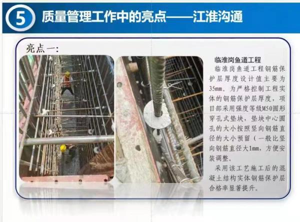 8月17日,引江濟淮集團公司召開8月份質量安全視頻會,會上,蚌埠江河公司承建的臨淮崗魚道工程混凝土鋼筋保護層作為亮點在視頻會上交流。